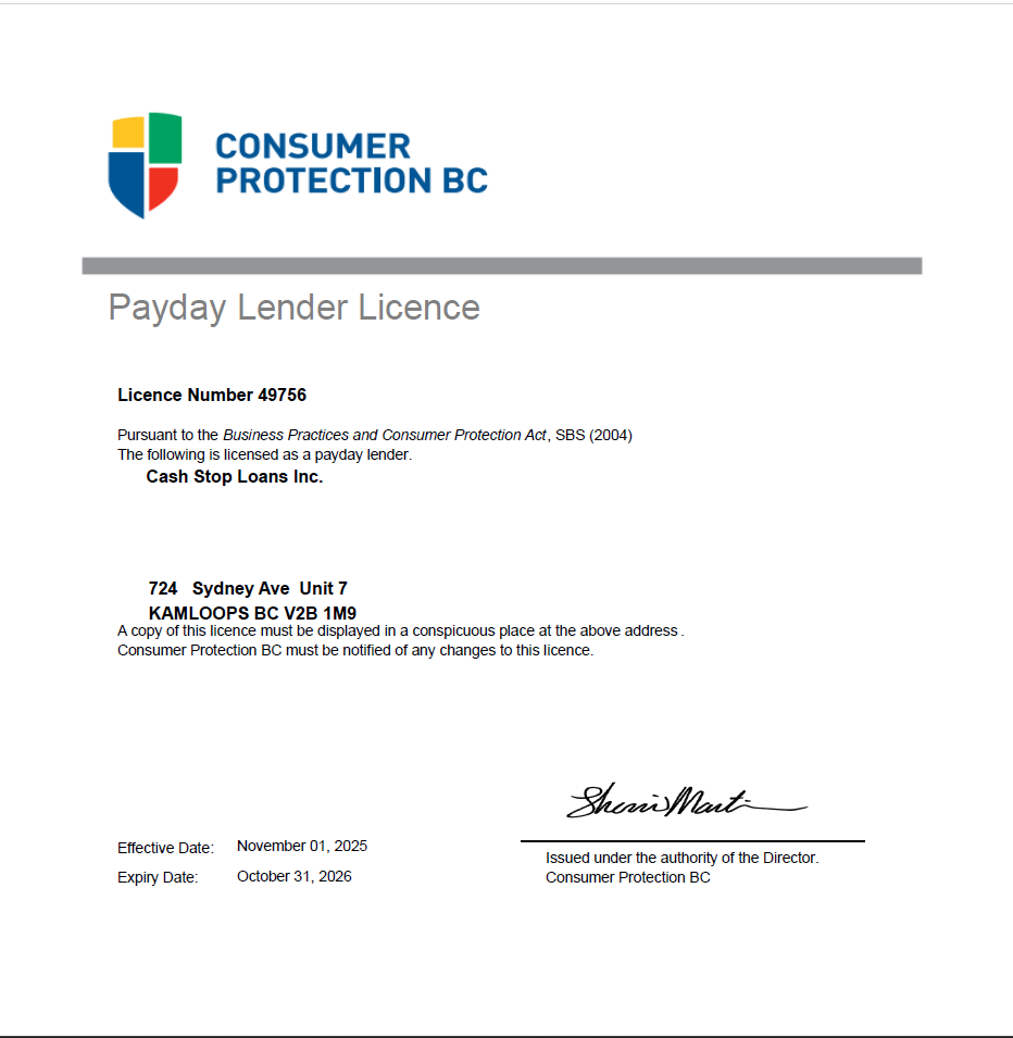 At Cash Stop Loans, we offer fast and convenient payday loan services that can help you cover your expenses until your next payday. If you have any questions or concerns about our payday loan services, please don't hesitate to contact us. Our friendly and knowledgeable staff are always ready to assist you.